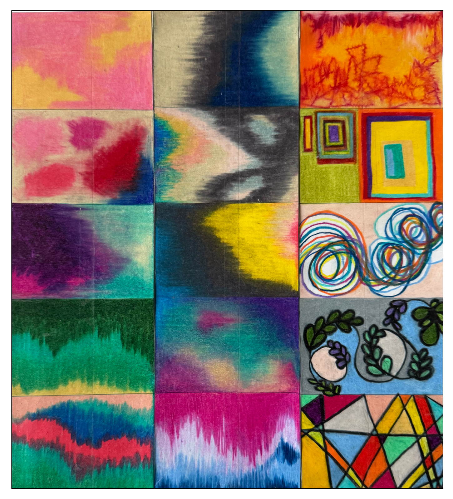 By letting go of the need to create aesthetically pleasing art, I found a healing rhythm in the simple movement of a marker across the page, eventually finding structure even in the pieces I had torn apart. This process began with soothing music and a focus on breath, allowing my hand to create monochromatic, gestural lines without the pressure of emotion or compensation. When I initially compared my raw work to others', I felt self-judgment that led me to shred the page.