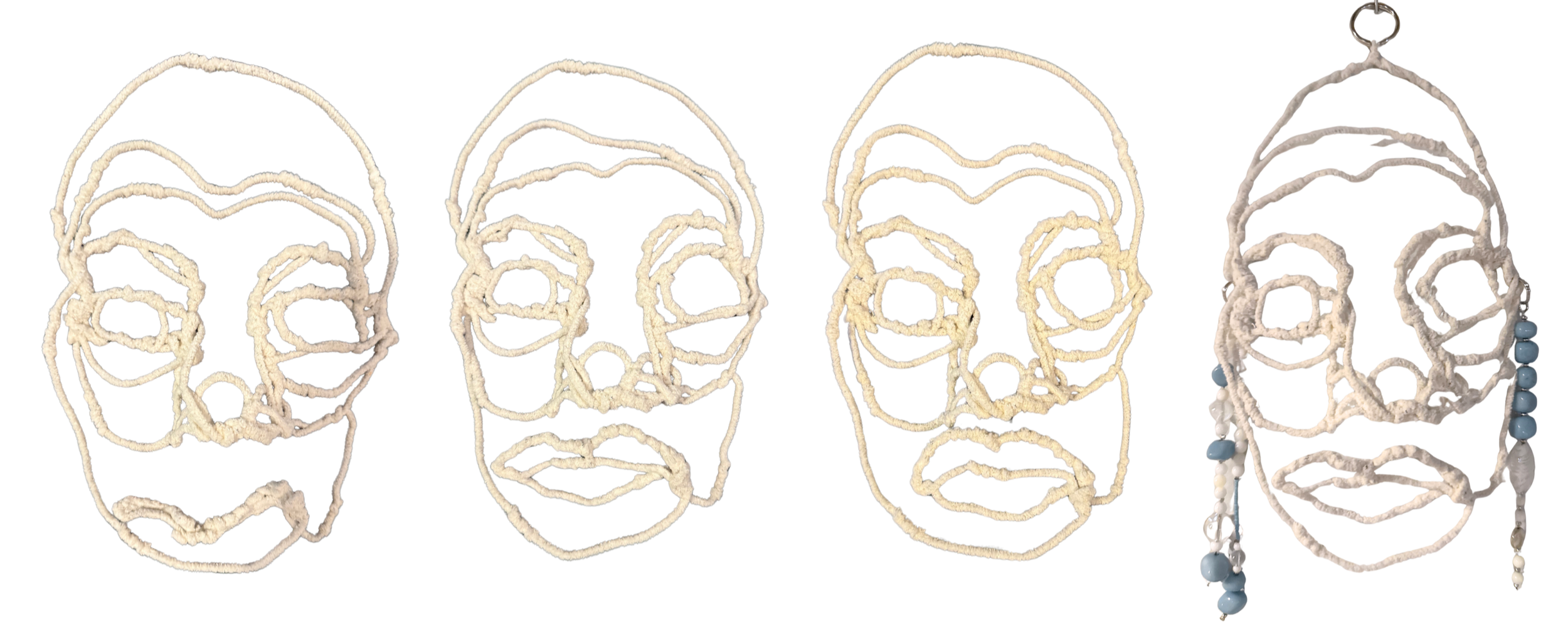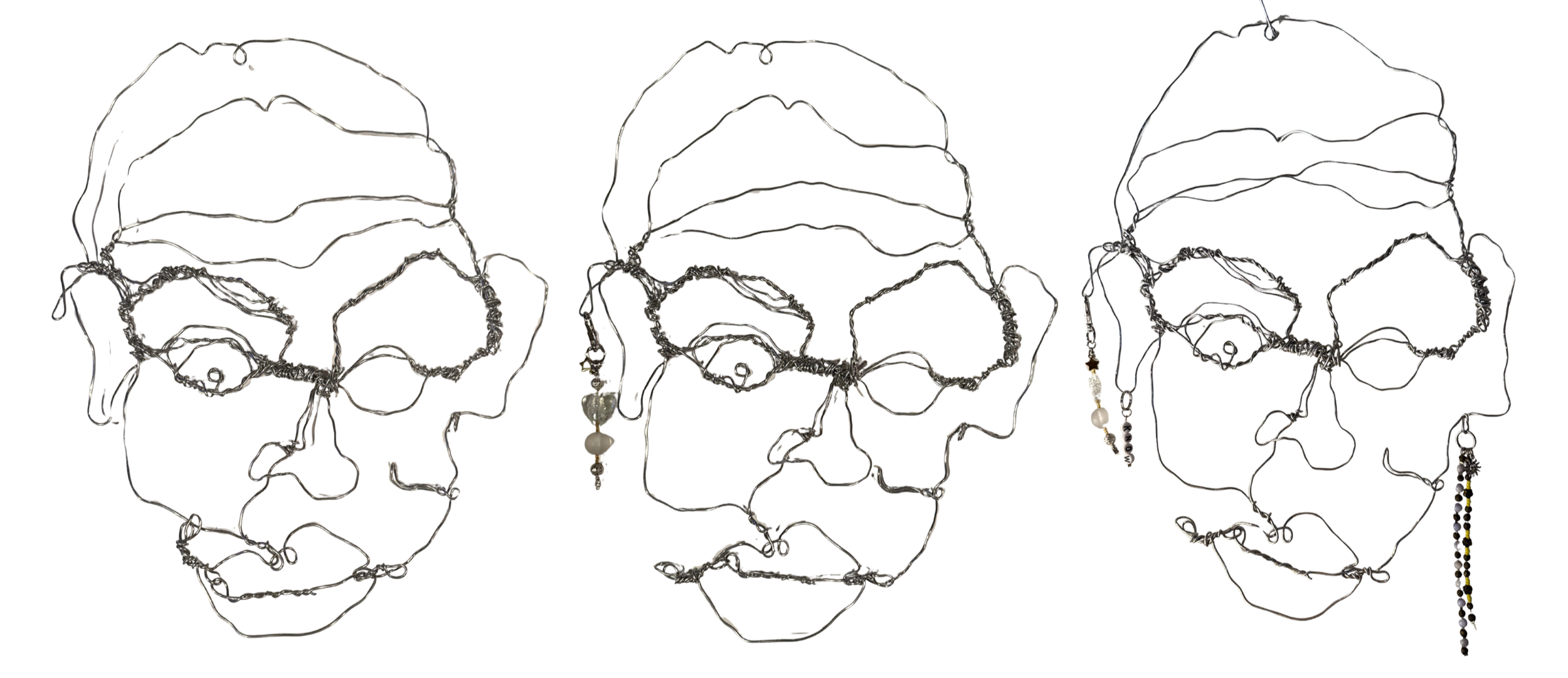 By adorning the wire twists that represent my stress and tension, I progressed from self-picking to self-acceptance. This project began as a cathartic physical exertion, using thick wire to give form to the areas of loss and tension in my face. Initially, I found the work overly self-critical—it felt disturbing rather than positive. However, I realized the humanistic objective was not to create a "perfect" image but to accept and find uniqueness in the one I had made.
